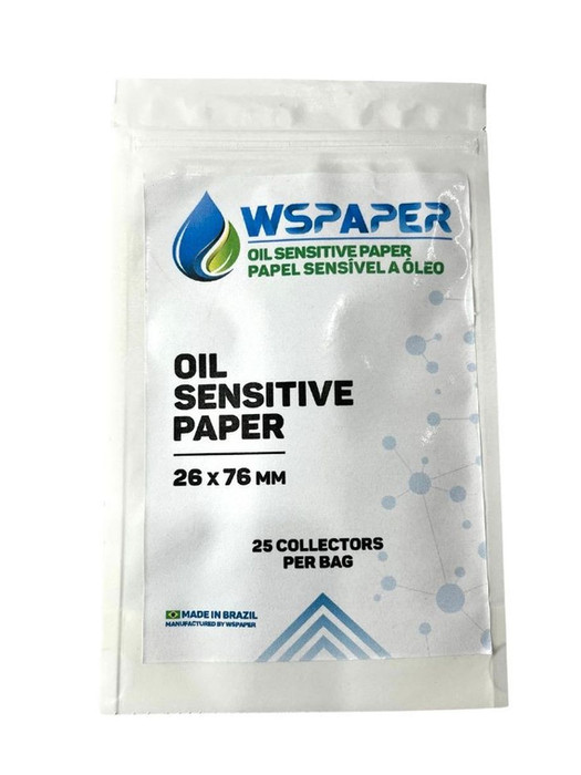 The water sensitive paper is commercialized in bags containing 50 units each. Oil sensitive paper is commercialized with 25 units each.